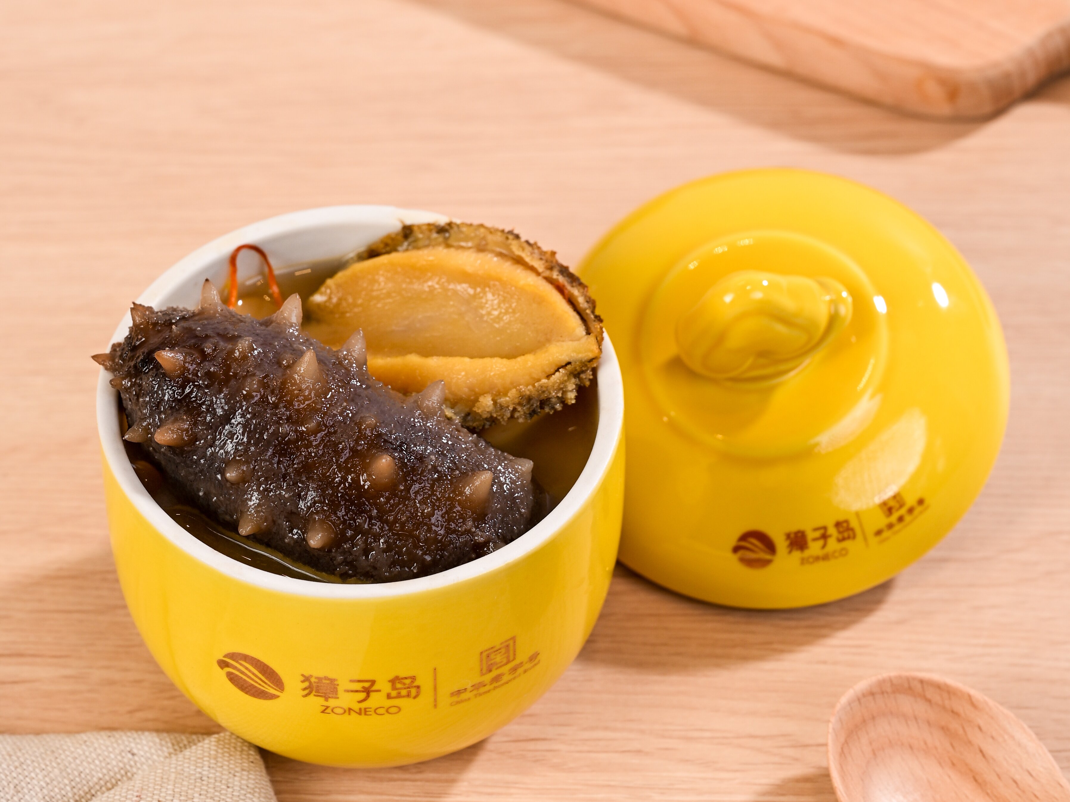 融合了海參、鮑魚、鱘魚龍筋、花膠、扇貝、蛹蟲草等多種風(fēng)味食材 金黃的濃稠湯汁里面都是各種海味的精華 入口綿柔,烹飪簡單 海參用冷水緩化,湯料包加熱10分鐘 即可在家吃到星級出品的龍筋佛跳墻