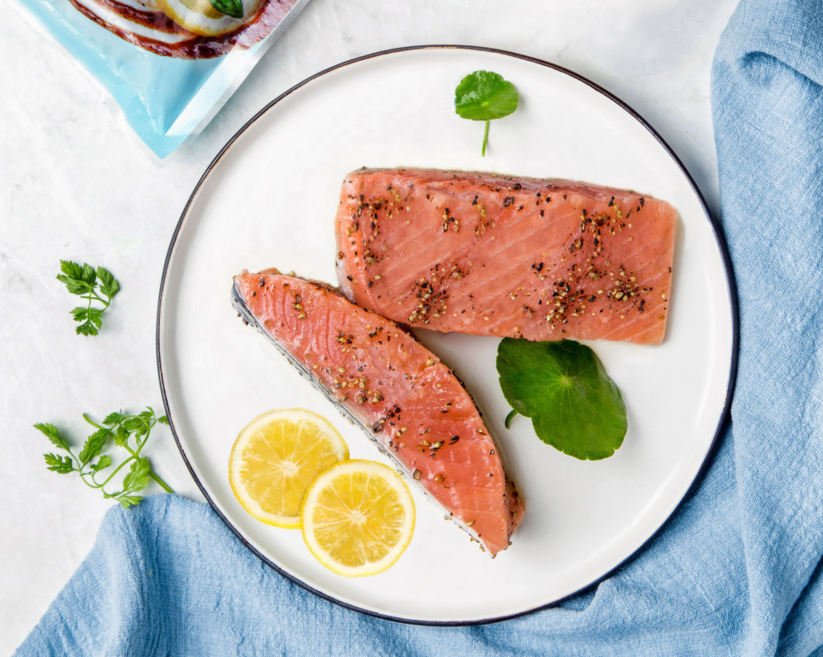 甄選美國(guó)阿拉斯加野生三文魚(yú) 佐以黑胡椒醬 去腥提鮮,剔骨去刺 味道醇正,食用方便