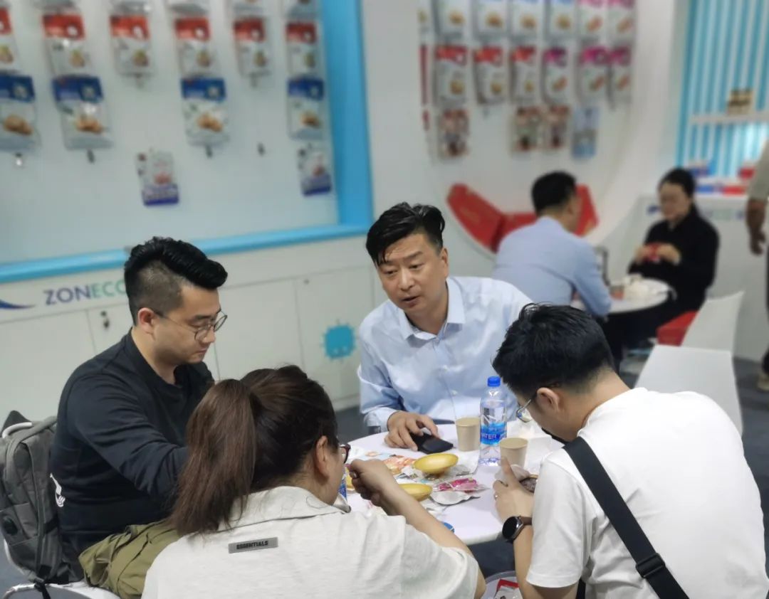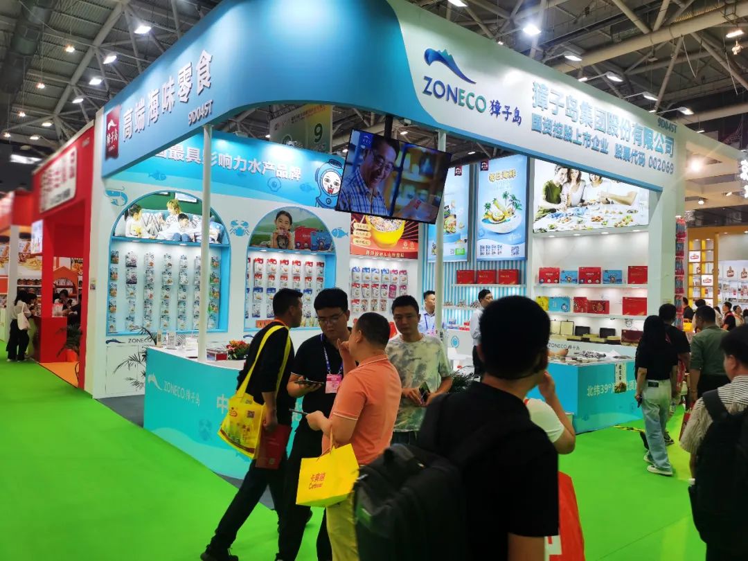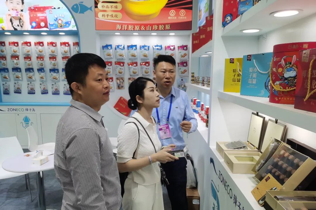 獐子島集團(tuán)展位往來客商絡(luò)繹不絕,紛紛在駐足、品鑒、洽談。