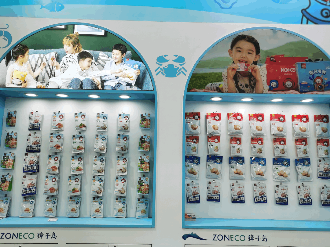 在開展首日,作為本屆展會參展企業(yè)中最具規(guī)模的海洋食品企業(yè),獐子島集團(tuán)攜全品系海味零食產(chǎn)品和刺參系列產(chǎn)品亮相9D-045T展位。活潑可愛的卡通形象、琳瑯滿目的海味零食給本屆展會增添了不同色彩,成為全場的焦點。
