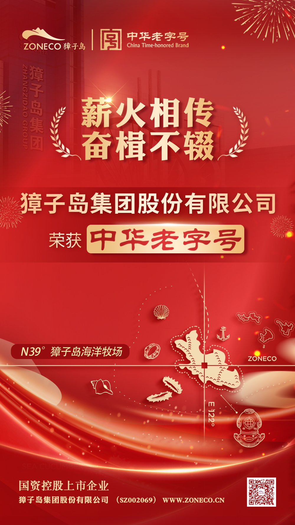 2024年2月1日,商務(wù)部等5部門發(fā)布關(guān)于公布第三批中華老字號(hào)名單的通知,獐子島集團(tuán)股份有限公司——“獐子島”品牌被認(rèn)定為“中華老字號(hào)”。