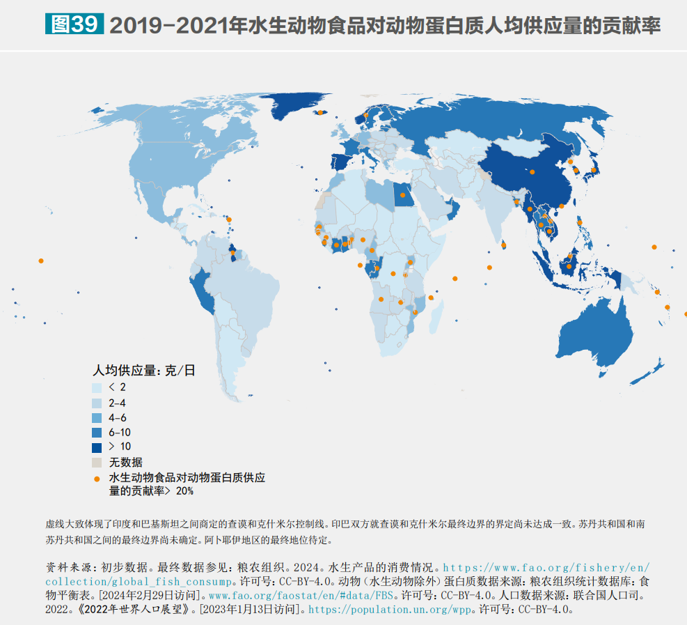 2019-2021年水生動物食品對動物蛋白質(zhì)人均供應(yīng)量的貢獻(xiàn)率。?糧農(nóng)組織