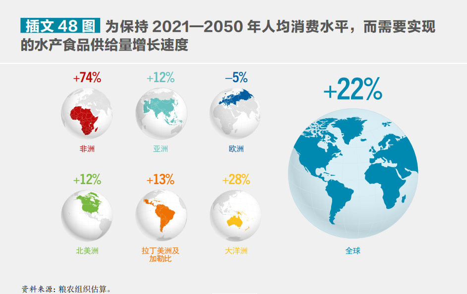 為保持 2021—2050 年人均消費(fèi)水平,而需要實現(xiàn)的水產(chǎn)食品供給量增長速度。?糧農(nóng)組織