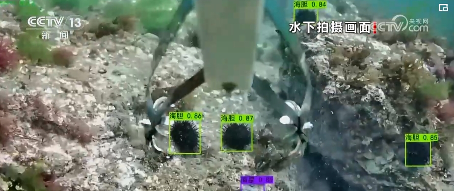 產(chǎn)量上來了,如何提升養(yǎng)殖效能?過去,深海底播養(yǎng)殖收獲捕撈需要潛水員潛入海中,不僅捕撈難度大,還有安全風險。現(xiàn)在,由大連海事大學自主研發(fā)的“海鷹號”水下捕撈機器人,它集成了最新的水下仿生視覺增強技術(shù)可以下水作業(yè)。它的機械手夾取部分是多鋸齒結(jié)構(gòu),這樣夾的準確,同時它可以反饋夾取目標的松緊程度,實現(xiàn)海產(chǎn)品的無損抓取。在水下它不僅能靈巧避開障礙,還能識別出海產(chǎn)品,分辨大小、精準捕撈。單個海產(chǎn)品捕撈僅需4秒鐘,可以連續(xù)作業(yè)4—7小時,效率高、更安全。“海鷹號”還能當海洋牧場的“眼睛”,可視化監(jiān)測海產(chǎn)品生長密度和成活率。