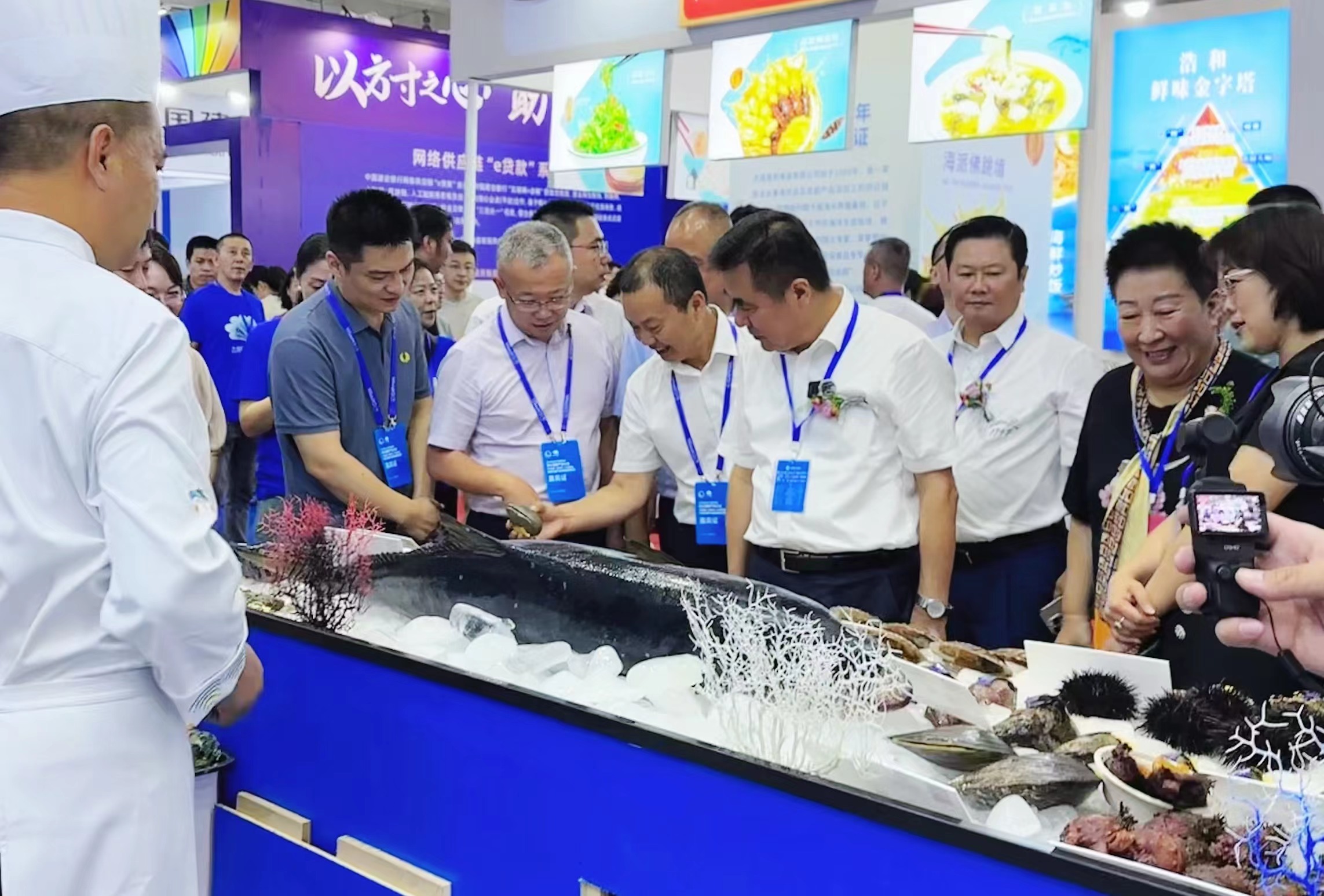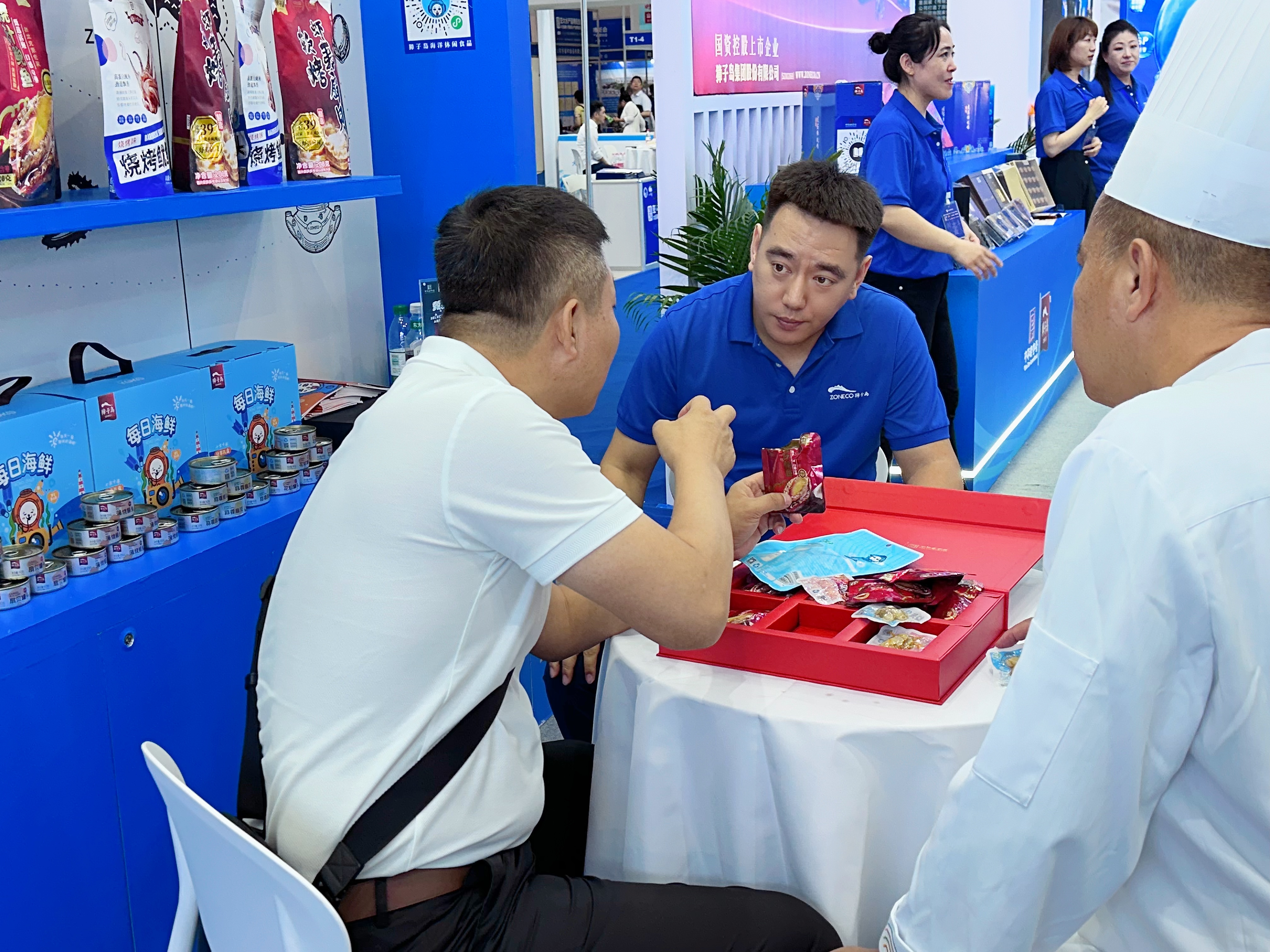 步入大連世界博覽廣場(chǎng),大連農(nóng)漁產(chǎn)業(yè)集團(tuán)與獐子島集團(tuán)共同打造的海洋文化與海洋產(chǎn)品匯聚的特色展區(qū),在眾多展位中脫穎而出,吸引了絡(luò)繹不絕的參觀者。大家被這份來(lái)自深藍(lán)的召喚所吸引,駐足洽談商機(jī)、品鑒“獐子島味道”特色海鮮美食。