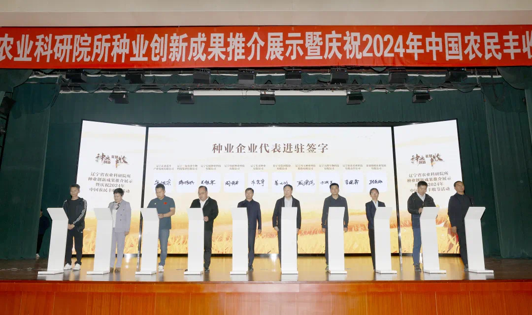 開幕式后,省農(nóng)科院黨組成員、副院長李鐵奇發(fā)表遼寧種業(yè)創(chuàng)新沈陽宣言;隨后舉行了農(nóng)業(yè)科研院校、企業(yè)及專家團隊進駐遼寧省種業(yè)創(chuàng)新研究院儀式,省農(nóng)科院黨組成員、副院長李玉晨等10家農(nóng)業(yè)科研院校相關負責人及10家企業(yè)代表、10位專家代表現(xiàn)場簽約;省農(nóng)科院、沈陽農(nóng)業(yè)大學、沈陽市農(nóng)科院等6家農(nóng)業(yè)科研院校分別進行了成果推介,共推介種業(yè)創(chuàng)新成果185個;省農(nóng)科院與獐子島集團股份有限公司等5家企業(yè)進行成果轉(zhuǎn)讓簽約;省農(nóng)科院黨組成員、副院長潘榮光發(fā)布省農(nóng)科院標識使用授權名單,共授權盤錦菜根堂農(nóng)業(yè)科技有限公司等60家涉農(nóng)企業(yè)和新型農(nóng)業(yè)經(jīng)營主體使用“遼寧省農(nóng)業(yè)科學院鄉(xiāng)村振興科技示范基地”標識。