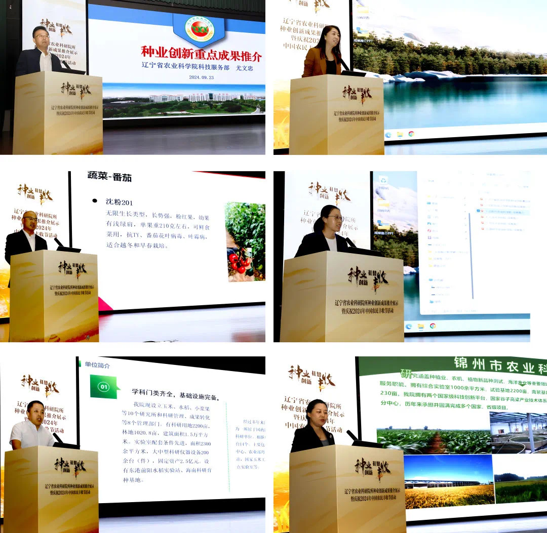 金秋時節(jié),碩果飄香。9月23日,由省科技廳、省農(nóng)業(yè)農(nóng)村廳、省農(nóng)科院共同主辦,省農(nóng)科院承辦的“遼寧省農(nóng)業(yè)科研院所種業(yè)創(chuàng)新成果推介展示暨慶祝2024年中國農(nóng)民豐收節(jié)”活動在省農(nóng)科院會展中心舉辦。活動的主題是“種業(yè)創(chuàng)新 禮贊豐收”,省科技廳、省農(nóng)業(yè)農(nóng)村廳、省農(nóng)科院、沈陽農(nóng)業(yè)大學及各市農(nóng)科院所相關負責人,遼寧東亞種業(yè)有限公司等53家涉農(nóng)企業(yè)、新型農(nóng)業(yè)經(jīng)營主體負責人,省農(nóng)科院及相關單位的部門負責人、職工代表等共600余人參加此次活動。活動由省農(nóng)科院黨組成員、副院長馮良山主持。