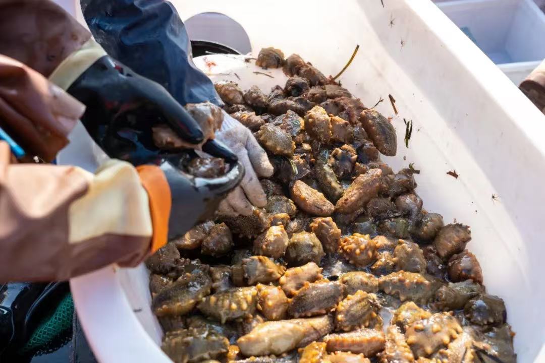 潛水員興奮的說,今年采捕的源刺參大部分個(gè)頭大、分量足,大的差不多能有四五兩,“今年這邊的海參,指定又是一個(gè)豐收年!”而小的不足2.5兩的海參,就要放歸大海,為的是保證野生源刺參的可持續(xù)發(fā)展。
