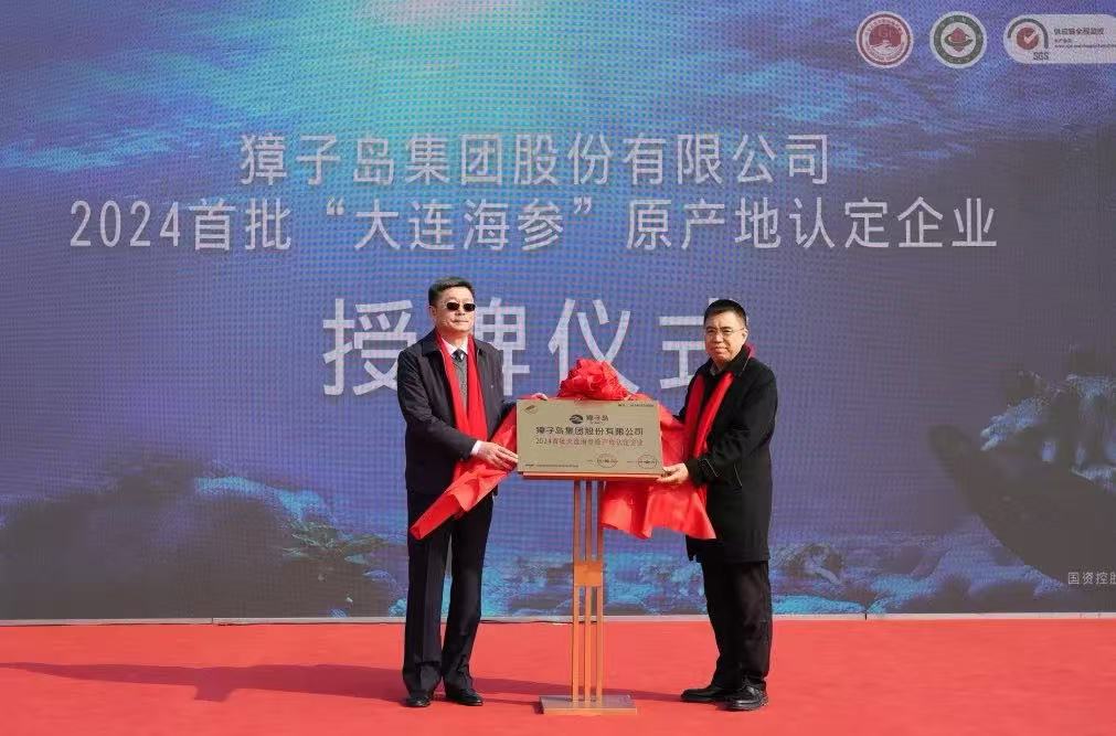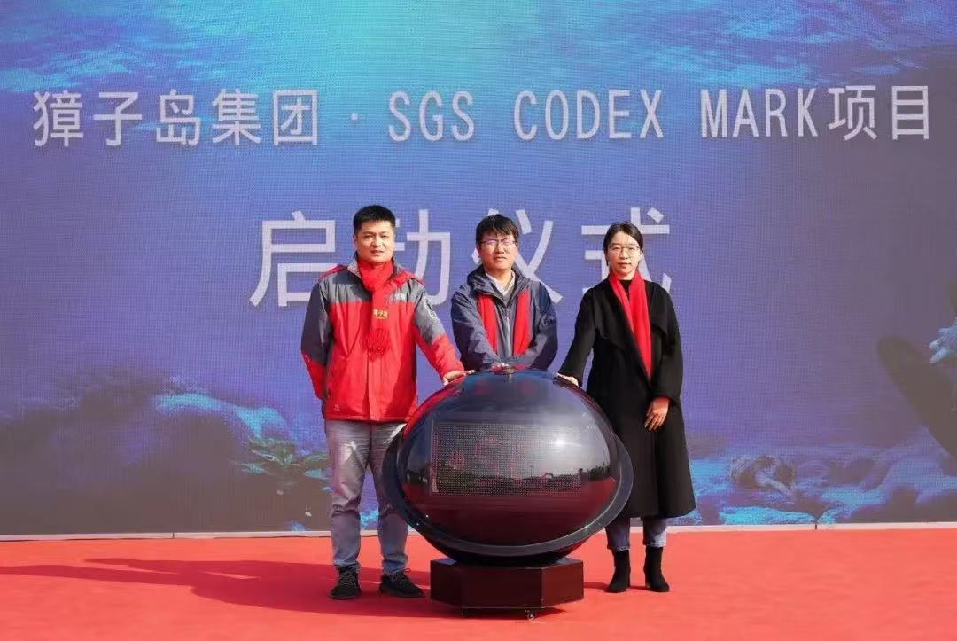 在冬捕節(jié)啟幕儀式上,大連市海洋漁業(yè)協(xié)會(huì)秘書長(zhǎng)張恒、獐子島集團(tuán)總裁戰(zhàn)成敏為獐子島集團(tuán)榮獲“2024首批“大連海參”原產(chǎn)地認(rèn)定企業(yè)”揭牌;SGS東北區(qū)農(nóng)產(chǎn)食品部經(jīng)理劉守峰、獐子島鎮(zhèn)政府鎮(zhèn)長(zhǎng)鄒紅錦、獐子島集團(tuán)副總裁劉明共同啟動(dòng)了SGS CODEX Mark認(rèn)證項(xiàng)目。