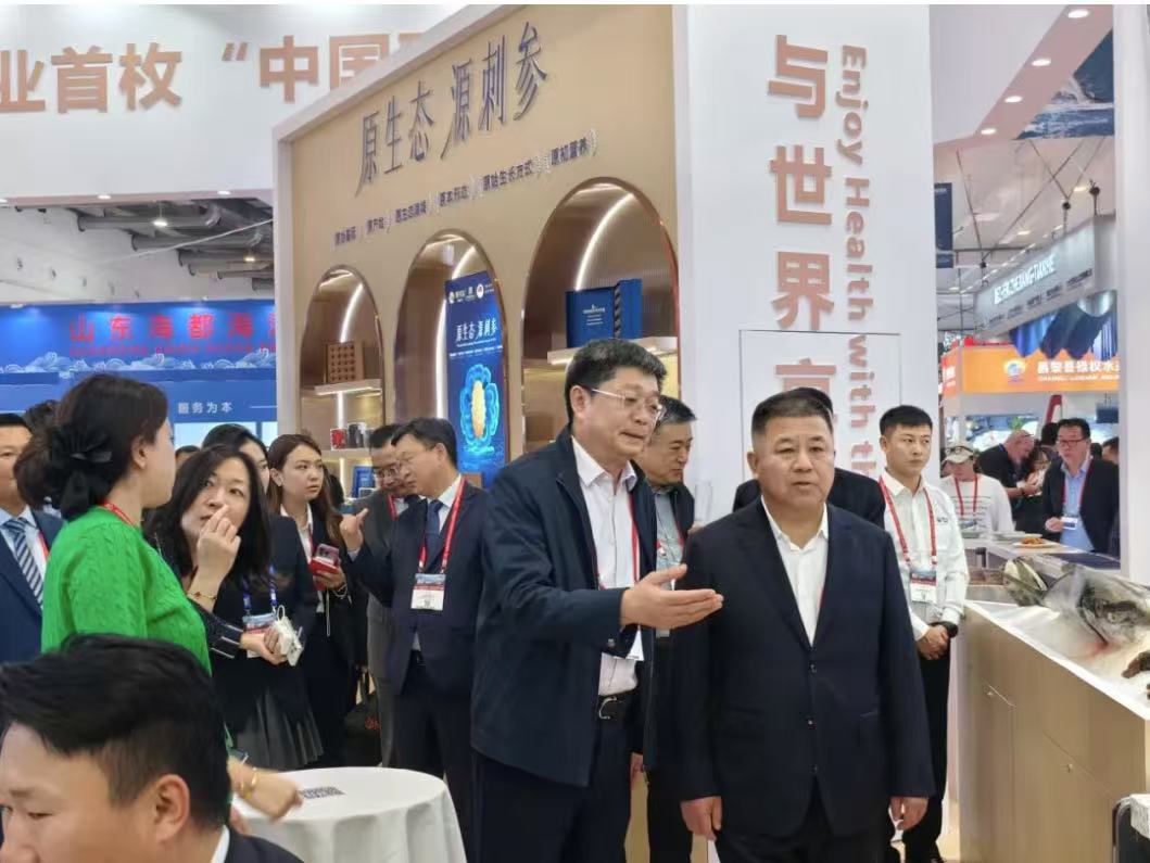 博覽會首日,大連市副市長楚天運親臨獐子島集團展位,在獐子島集團總裁戰(zhàn)成敏的陪同下考察指導。
