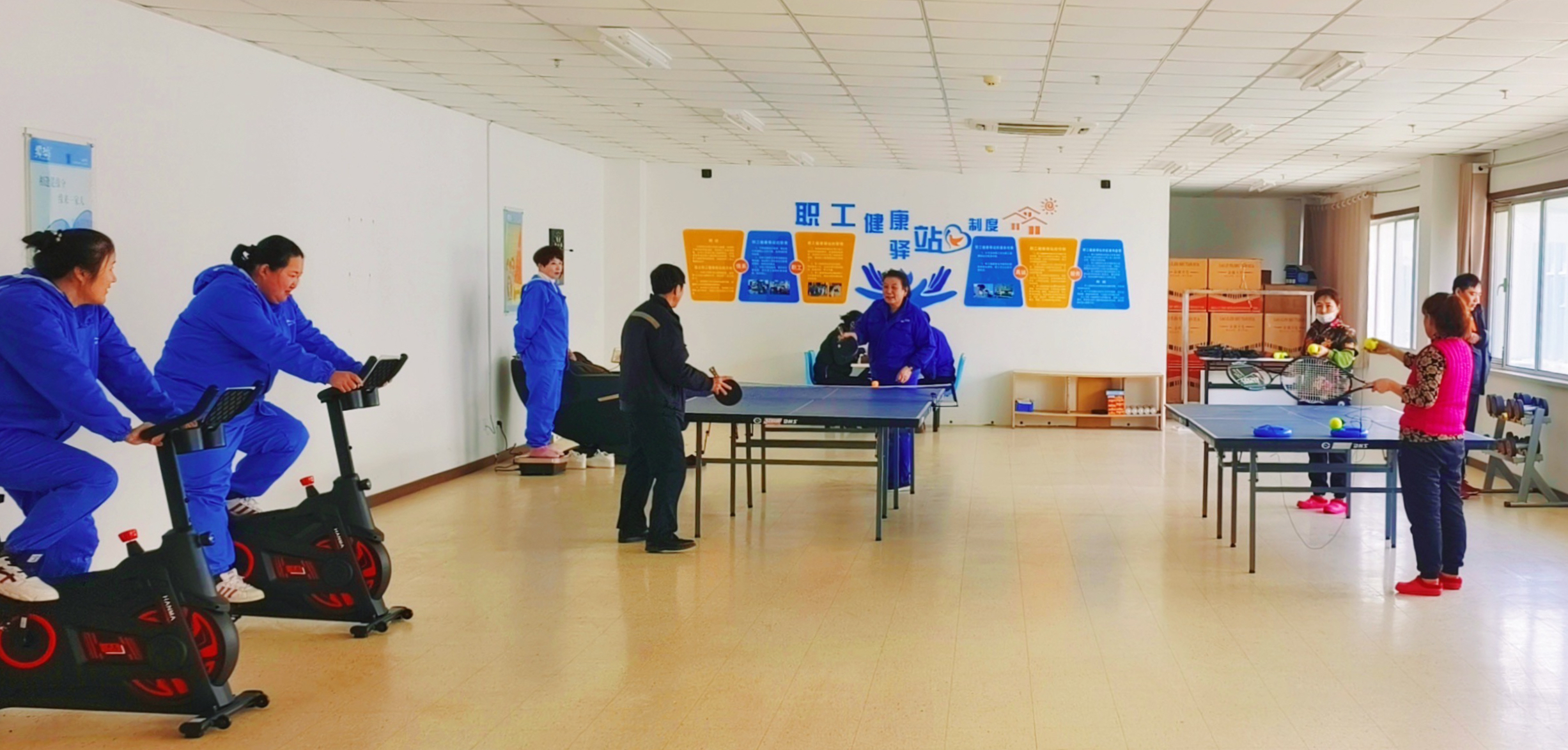 該健康驛站設(shè)有健康檢測、運(yùn)動(dòng)健身、休閑娛樂等功能區(qū),既滿足獐子島上500余名職工日常健康監(jiān)測、疾病預(yù)防、緊急醫(yī)療救助等需求,又滿足了職工鍛煉、學(xué)習(xí)和休閑的需求。