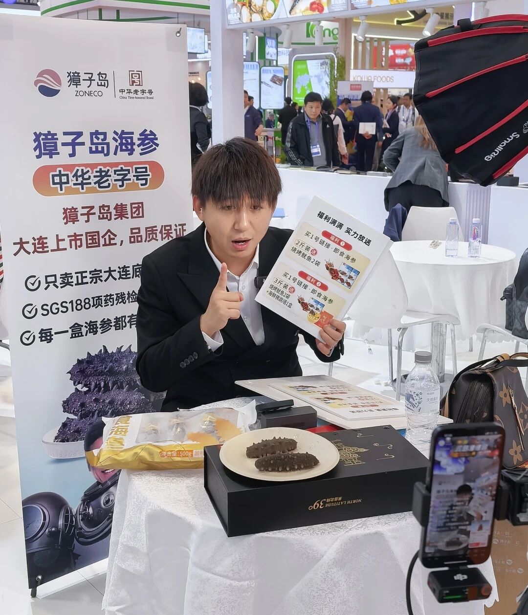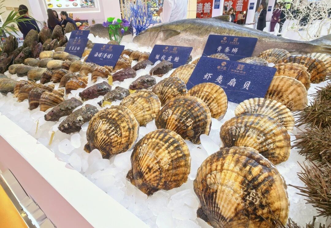 獐子島地處北緯39°,是首批國家級海洋牧場示范區(qū),也是中國海珍品原產地。這里地理、氣候和海域自然條件優(yōu)越,水溫低、鹽度高、餌料充足、營養(yǎng)豐富、海域開放、遠離大陸。憑借獨有的地理區(qū)位與水質環(huán)境,實現了刺參、鮑魚、扇貝、海膽、海螺、生蠔、魚類、藻類等生物多樣性價值。展會現場,在獐子島集團精心布置的活鮮品展示區(qū),帶有品牌標識的鮑魚、扇貝、海螺、海膽等優(yōu)質海珍品整齊陳列,依托可追溯體系,進一步強化消費者對高端海產品原產地的認知,提供差異化產品體驗。