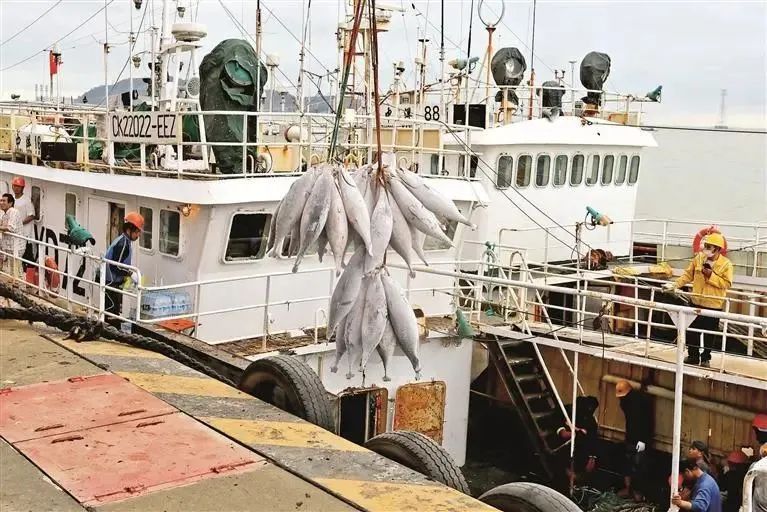 漁船作業(yè)范圍包括太平洋、西南大西洋、印度洋公海以及太平洋島國、東南亞、西亞、非洲等沿海國家專屬經(jīng)濟(jì)區(qū),初步形成了以金槍魚延繩釣為主、圍拖網(wǎng)作業(yè)為輔的生產(chǎn)體系。2021年金槍魚捕撈量1.09萬噸,占全省的78.2%,以高價(jià)值的冰鮮金槍魚為主,在全國占據(jù)重要地位。