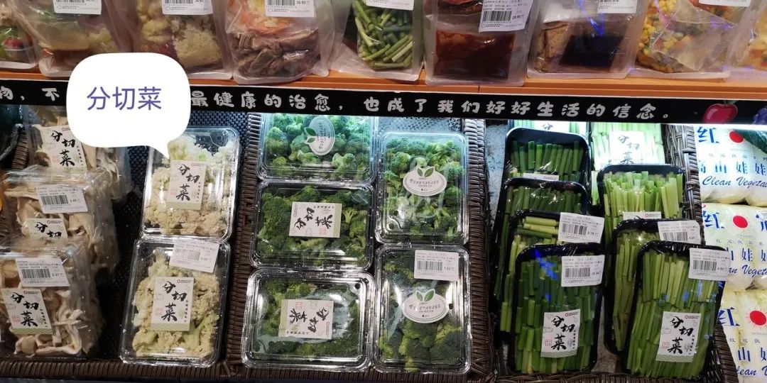 它們在超市的售價(jià)一般在9-50元之間,9元是蔬菜類,平均30元左右是肉類。其實(shí)不算很便宜,和市場上直接買的菜、肉,還是有一定的差距的,但為什么還賣的不錯(cuò)呢?