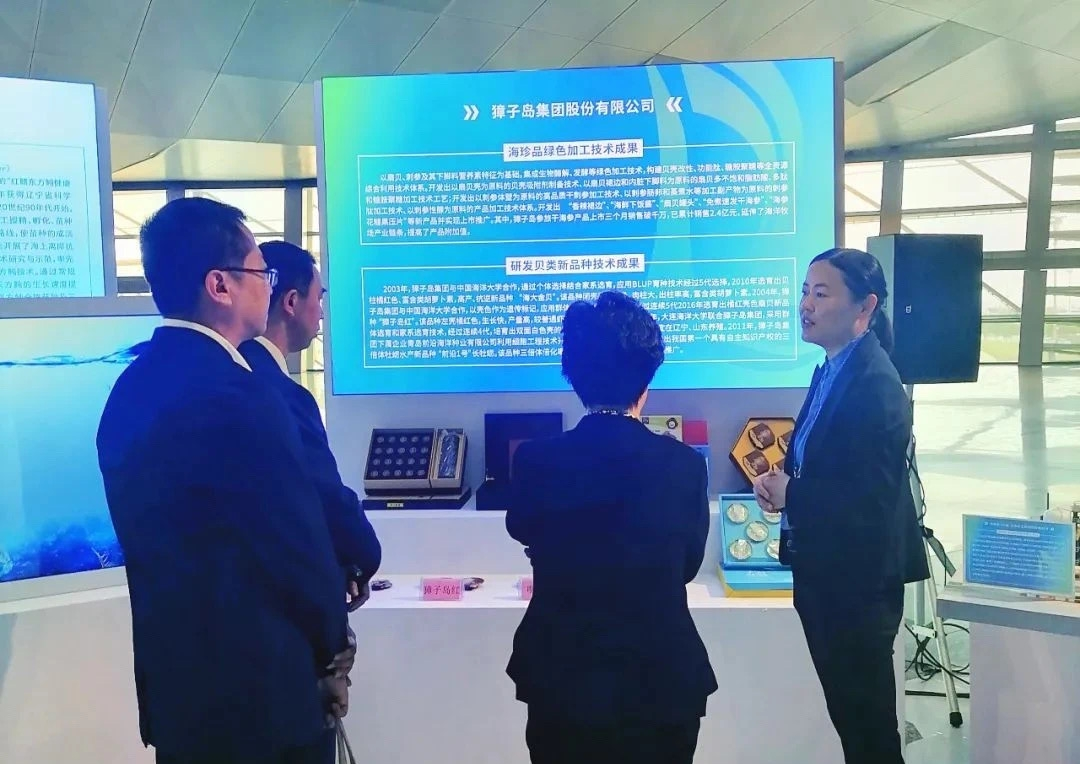 獐子島集團作為水產(chǎn)行業(yè)唯一參展企業(yè),展示了在國家貝類水產(chǎn)新品種研發(fā)和海珍品綠色加工方面的科技成果。“海大金貝”、“獐子島紅”、“明月貝”蝦夷扇貝以及青島前沿種業(yè)公司研發(fā)的“前沿1號”長牡蠣四個國家水產(chǎn)新品種已實現(xiàn)產(chǎn)業(yè)推廣;“免煮速發(fā)干海參”、“海鮮下飯醬”、“扇貝罐頭”、“休閑食品”等深加工及預(yù)制菜產(chǎn)品在市場上也廣受消費者歡迎。展會期間,公司科研人員還與多家院所專家圍繞海洋牧場建設(shè)及海鮮預(yù)制菜進行了技術(shù)交流。